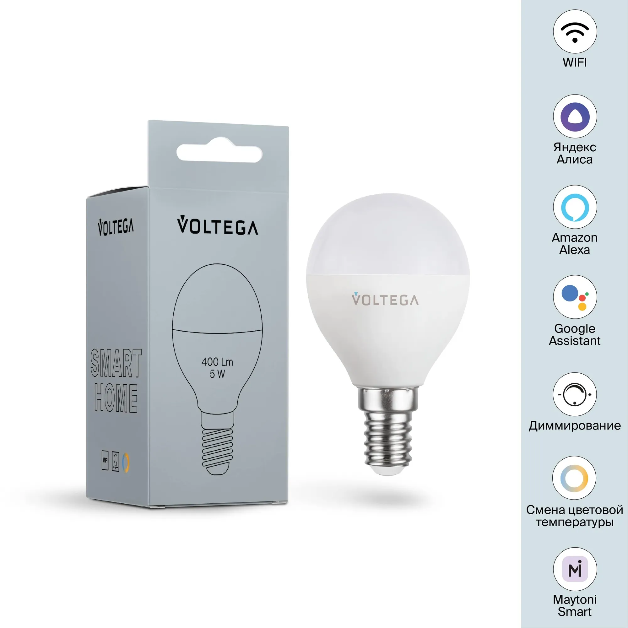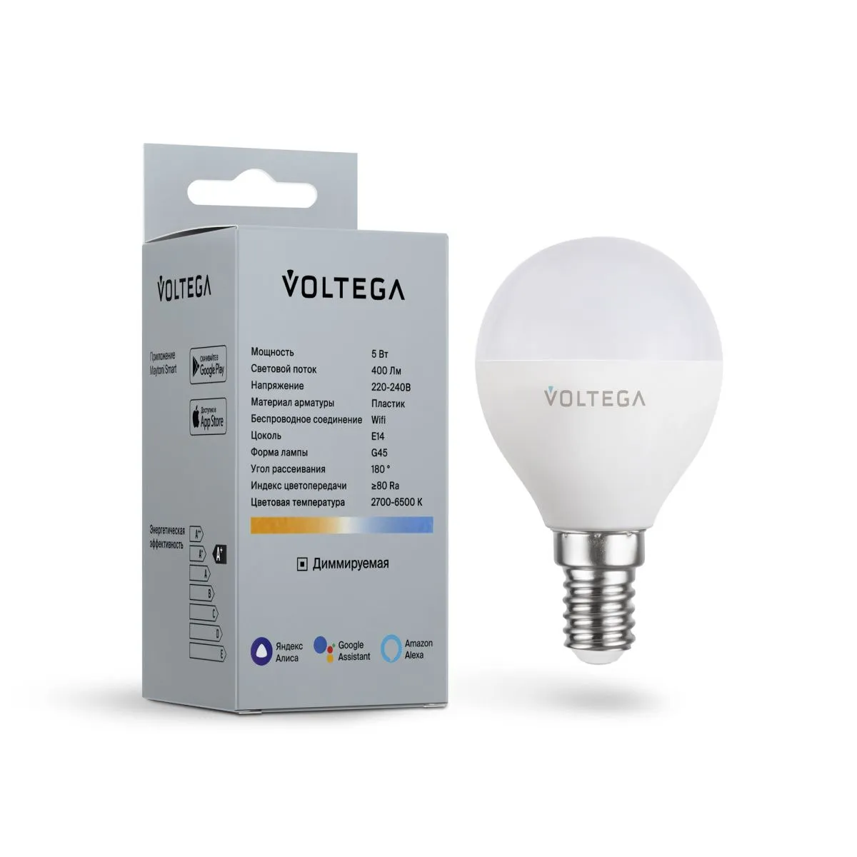 Лампа светодиодная диммируемая Voltega E14 5W 2700К матовая VG-G45E14cct-WIFI-5W 2428 купить в Ивантеевке по лучшей цене