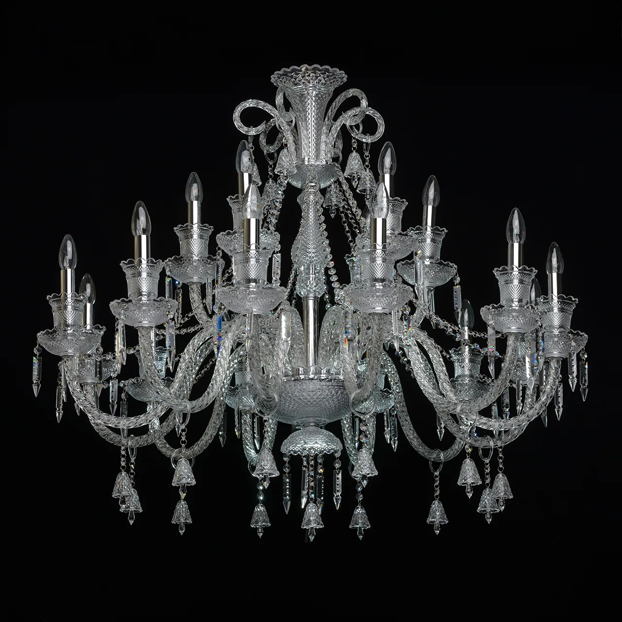 Металлическое основание цвета хрома, декоративные элементы из стекла и прозрачного хрусталя